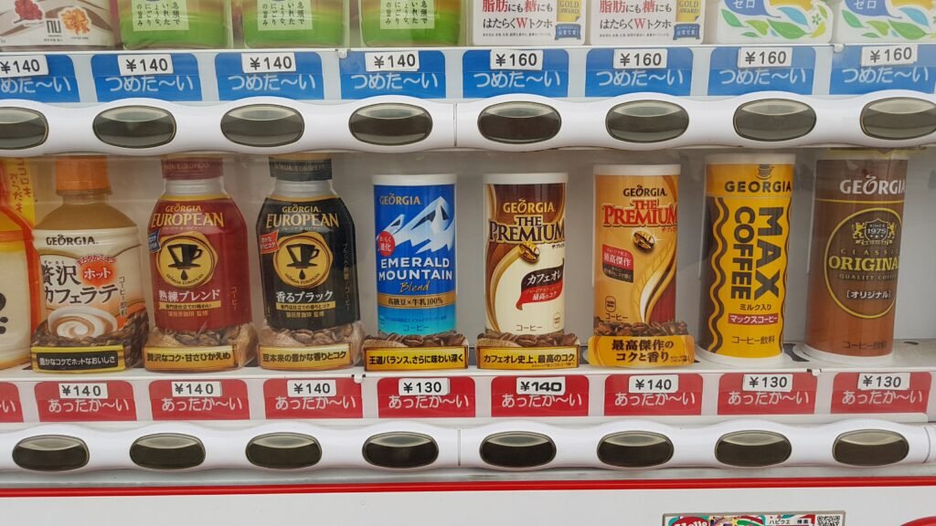 Sorprendentemente bien. Lejos del café de máquina insípido que podríamos imaginar, en Japón hay muchas variedades: desde negro sin azúcar (boss black) hasta con leche y azucarado (café au lait). Algunas marcas como Georgia, Boss o Wonda ofrecen blends de calidad, incluso con café de especialidad. La temperatura es perfecta, ya sea caliente o frío.