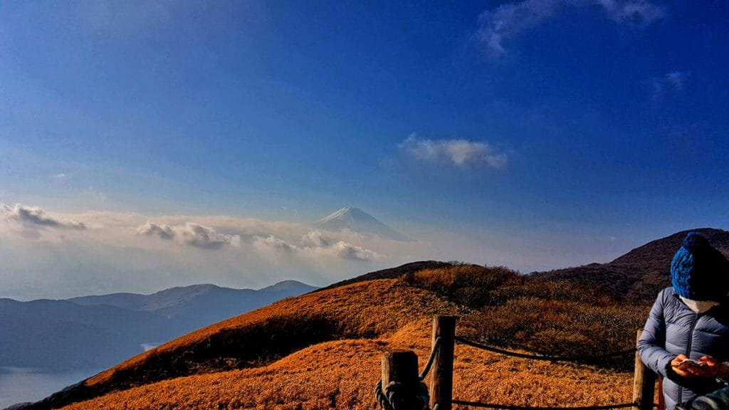 Sube a primera hora de la mañana en un día claro de invierno o otoño para tener la máxima probabilidad de ver el Fuji sin nubes.