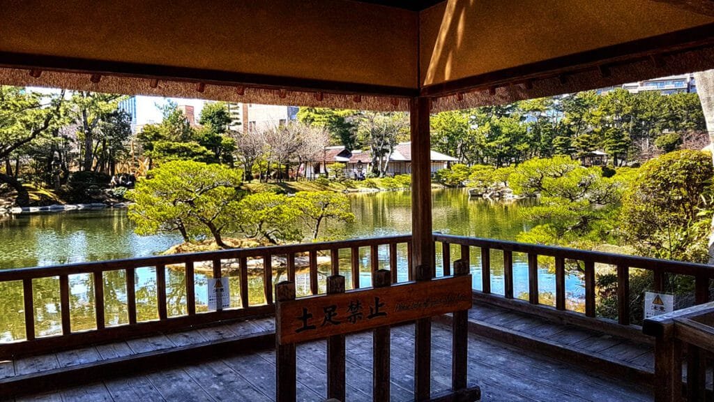 Porque es un ejemplo clásico de «jardín de paseo» (kaiyū-shiki teien) de la era Edo, donde cada giro del camino revela una nueva vista calculada, como desplegar un rollo de pintura. Está pensado para ser «leído» y experimentado, no solo visto.