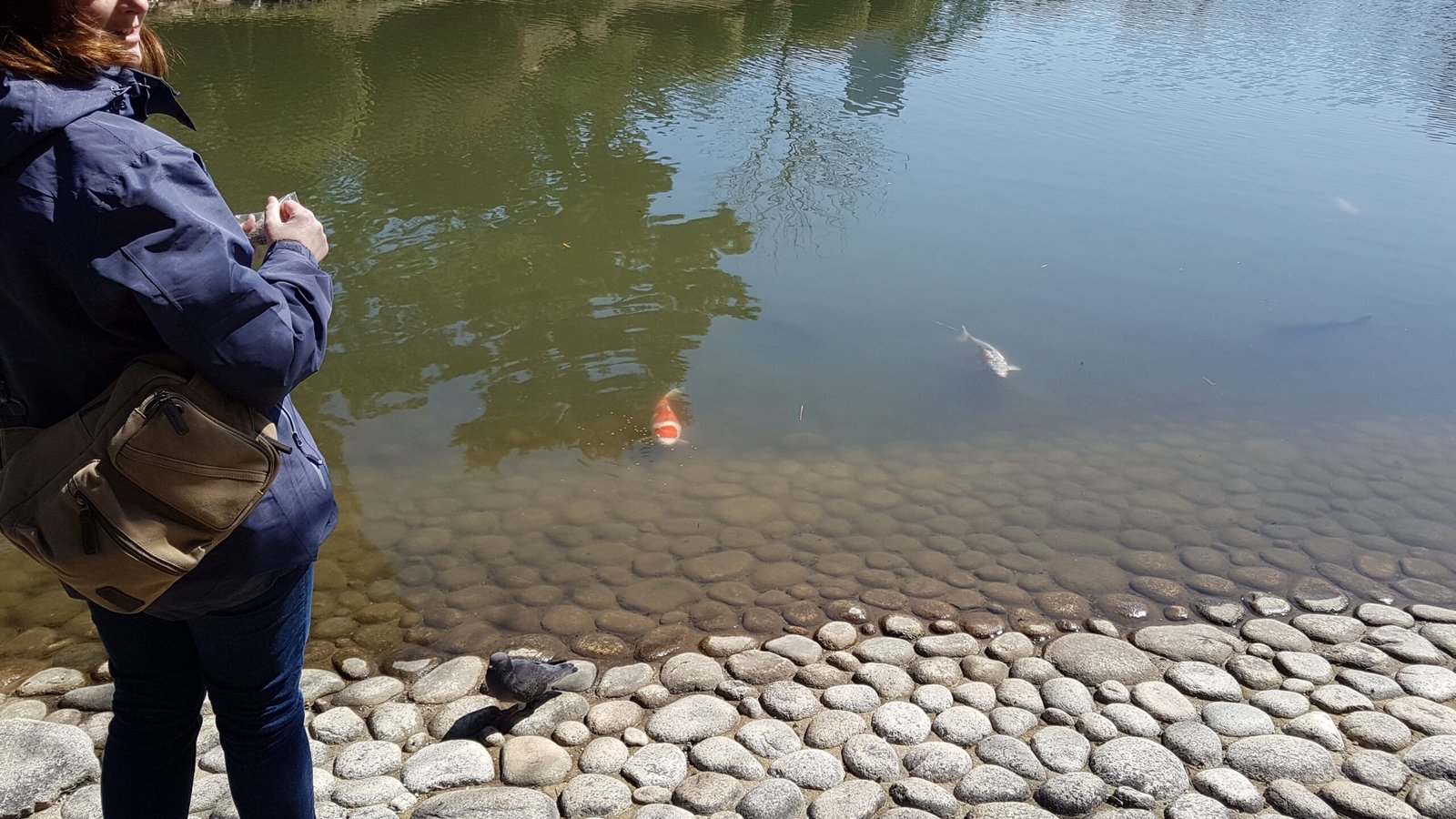 - Si hace buen tiempo, compra el set de matcha y dulce para llevar (take-out) de la casa de té y siéntate en uno de los bancos frente al estanque.
