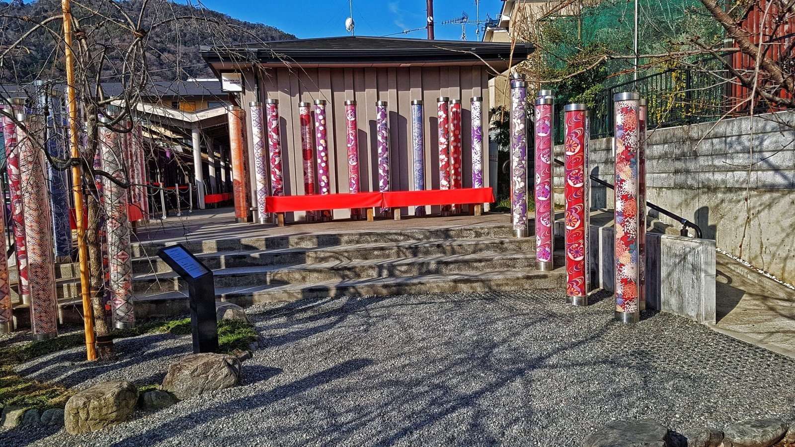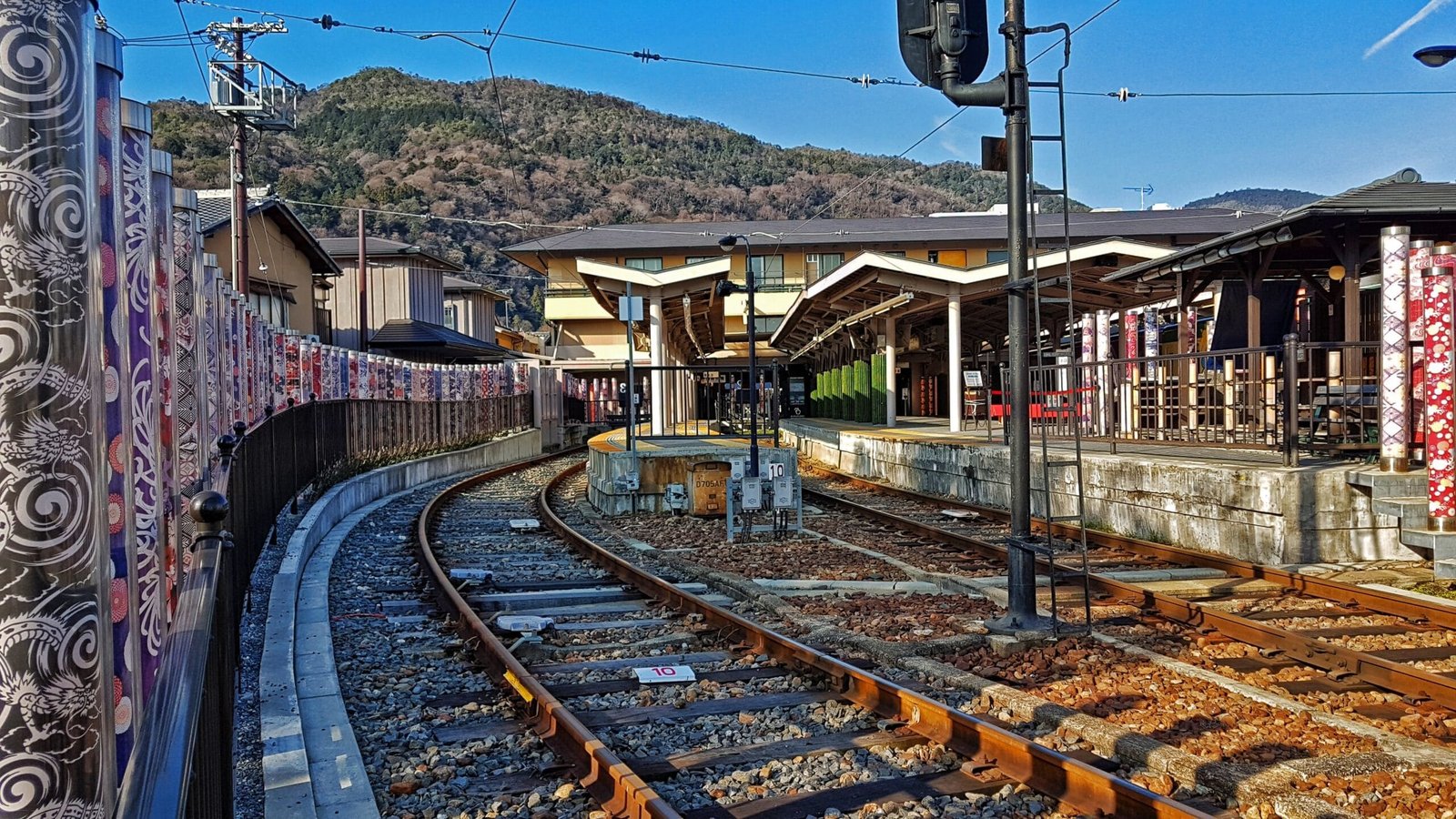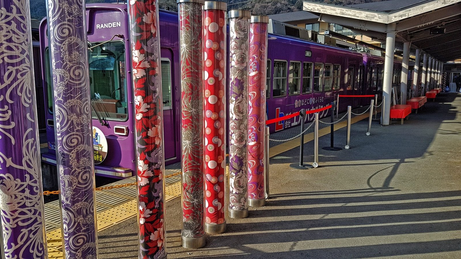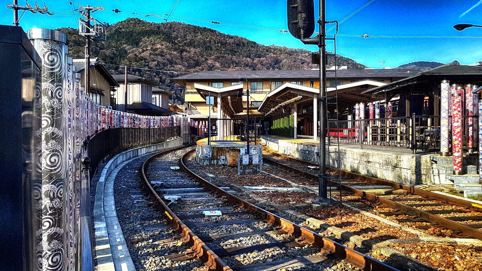 La estación terminal de la línea de tranvía Randen (Keifuku Arashiyama) es una puerta de entrada única a Arashiyama, famosa por albergar dos atracciones inusuales y gratuitas: el Kimono Forest (Kimono no Mori) y un relajante baño de pies con aguas termales (ashiyu). Esta combinación de arte textil contemporáneo y tradición termal japonesa, justo al llegar o salir del tranvía, la convierte en una experiencia distintiva y memorable, perfecta para una primera impresión o un descanso reparador.