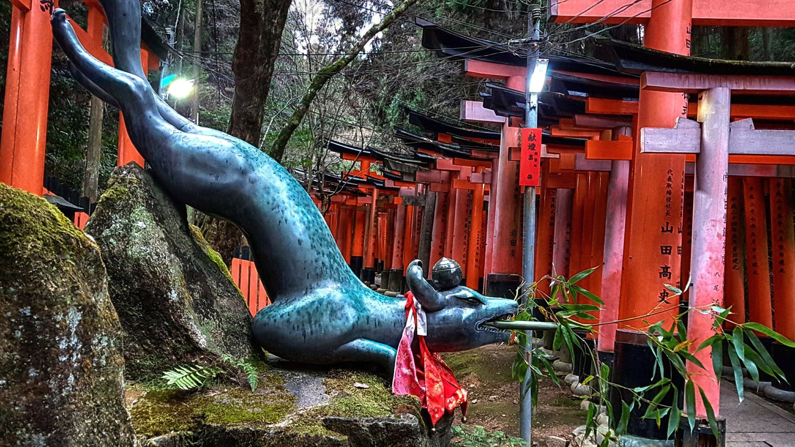 - Ver las estatuas de zorros (kitsune):** Los zorros son los mensajeros del dios Inari. Encontrarás sus estatuas por todo el recinto, muchas con una llave en la boca (símbolo del granero) o un ball.