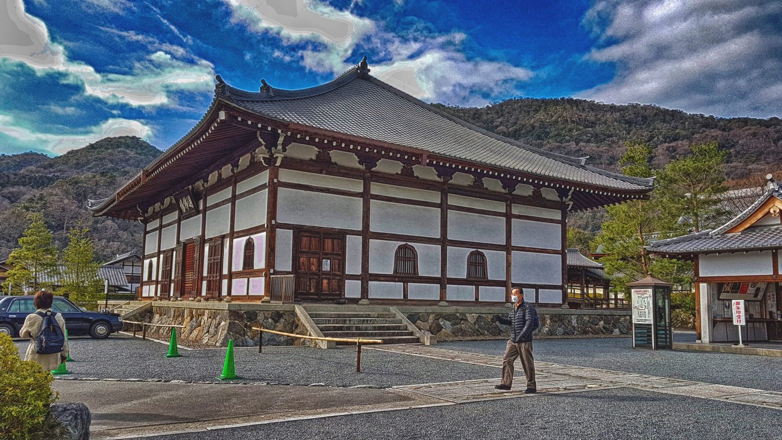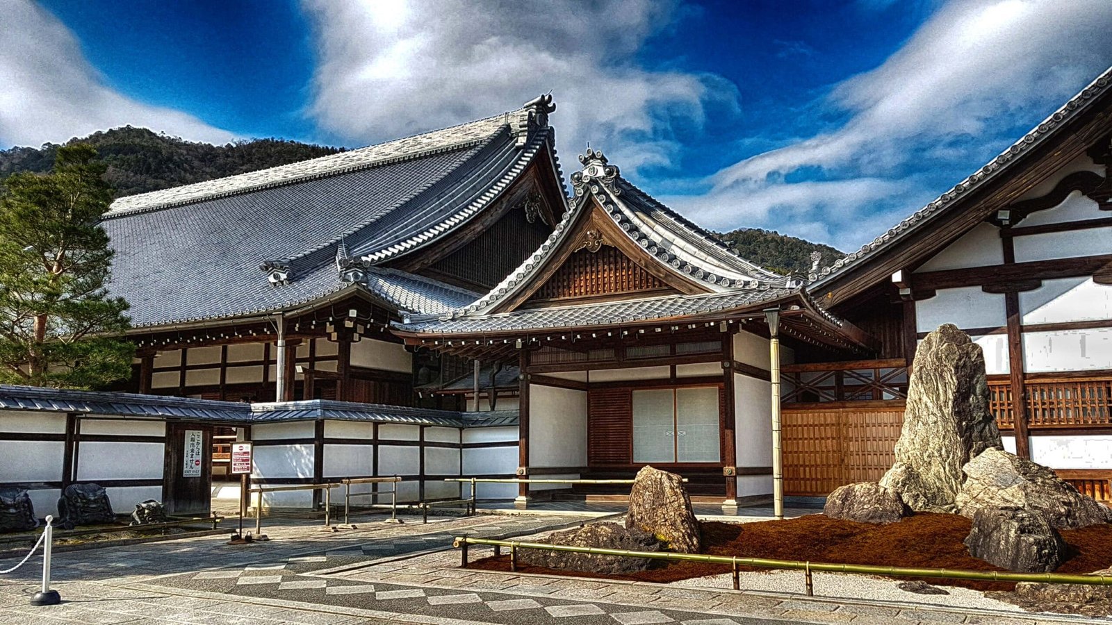 Tenryu-ji, declarado Patrimonio de la Humanidad por la UNESCO, es el templo más importante del distrito de Arashiyama y el principal de la escuela Rinzai del budismo Zen en Kioto. Su nombre significa «Templo del Dragón Celestial». Fundado en 1339 por el shogun Ashikaga Takauji, su fama mundial recae en el Sogenchi Teien, un sublime jardín paisajista diseñado por el legendario maestro Muso Soseki. Este jardín, que se disfruta desde el propio salón principal del templo, crea una perfecta ilusión de integración con las montañas de Arashiyama, especialmente con la icónica «Montaña de la Cortina de Nubes» (Kameyama). Es la obra maestra del concepto shakkei («paisaje prestado») y una lección viva de estética zen.
