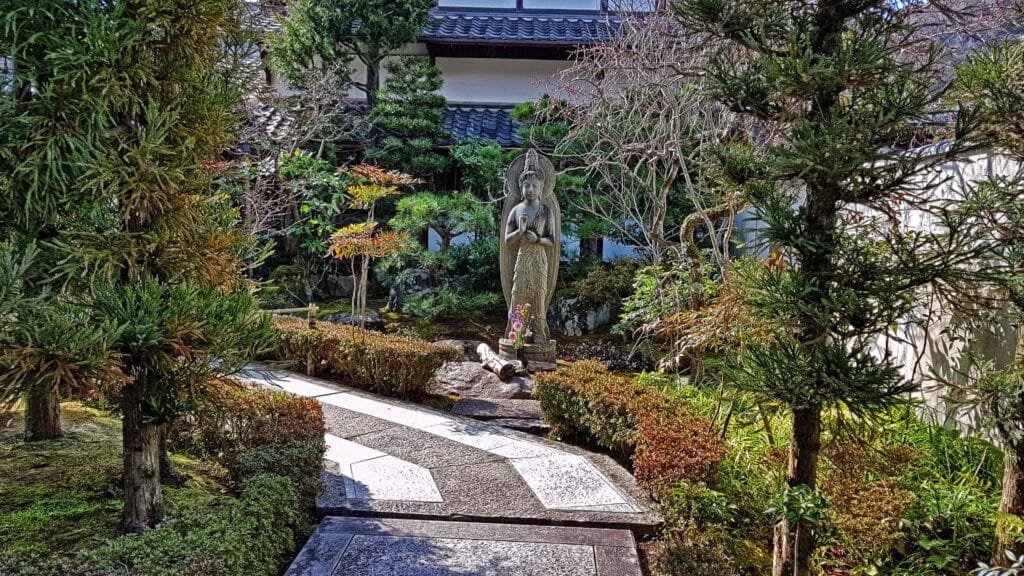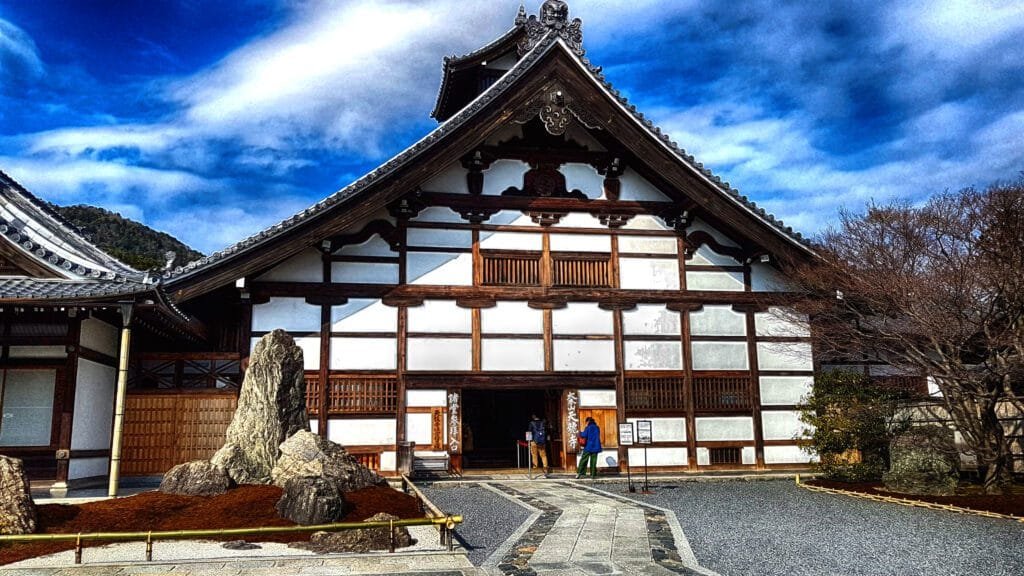 - Contemplar el Jardín Paisajista Sogenchi (Sogenchi Teien):** El corazón del templo. Un jardín con estanque, rocas dispuestas con maestría, pinos cuidadosamente podados y el «paisaje prestado» (shakkei) de las montañas de Arashiyama como telón de fondo. Se ve desde el verandah del Hatto (Salón de Conferencias).
