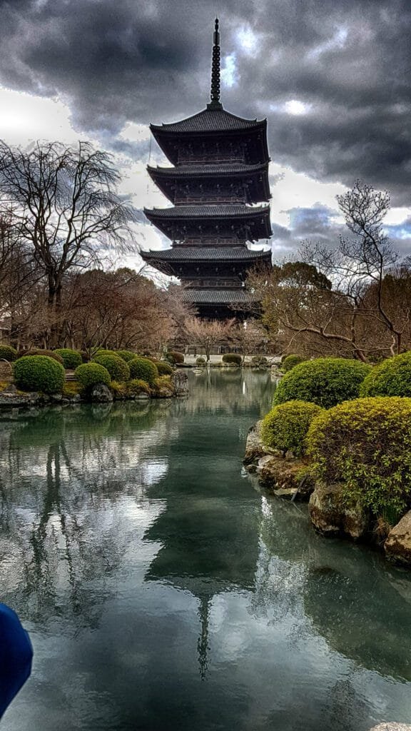 El templo To-ji (Templo del Este), fundado en el año 796, es uno de los monumentos más icónicos e históricamente significativos de Kioto. Designado Patrimonio de la Humanidad por la UNESCO, es famoso por albergar la pagoda de madera más alta de Japón (57 metros), un símbolo imperecedero del skyline de la ciudad. Como uno de los dos únicos templos supervivientes del antiguo plan urbanístico de Heian-kyo (la Kioto original), custodió el extremo sur de la capital. Hoy es un tesoro de arte budista esotérico (Shingon), un lugar de peregrinación y el escenario de uno de los mercados callejeros más auténticos y vibrantes de la ciudad.