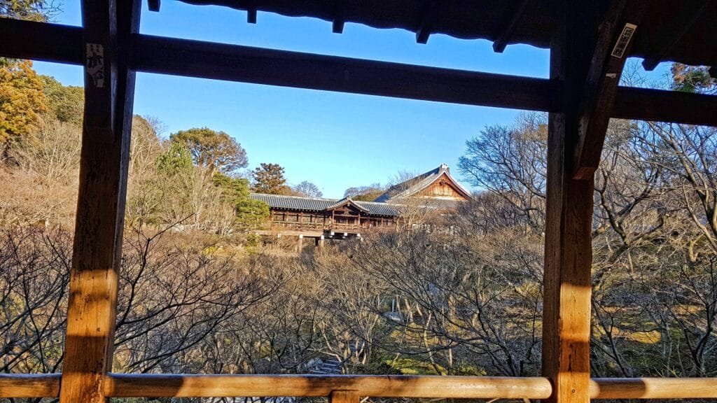 - En tren (JR Nara Line): La forma más rápida y directa. Desde la estación de Kioto o desde la estación de Fushimi Inari, toma la Línea JR Nara y bájate en «Tōfukuji Station». El templo está a 5-7 minutos a pie desde la salida oeste.