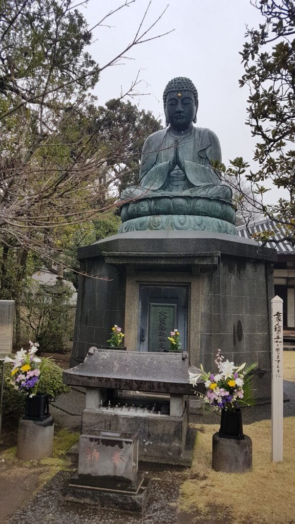 Lo que lo hace especial es su doble alma: por un lado, alberga el “Tennoji Daibutsu”, una estatua de Buda de bronce que sobrevivió a la Guerra Boshin; por otro, es el único templo de la ruta de los Siete Dioses de la Fortuna que está realmente dentro de Yanaka, dedicado a Bishamonten, el dios de la riqueza y la valentía.